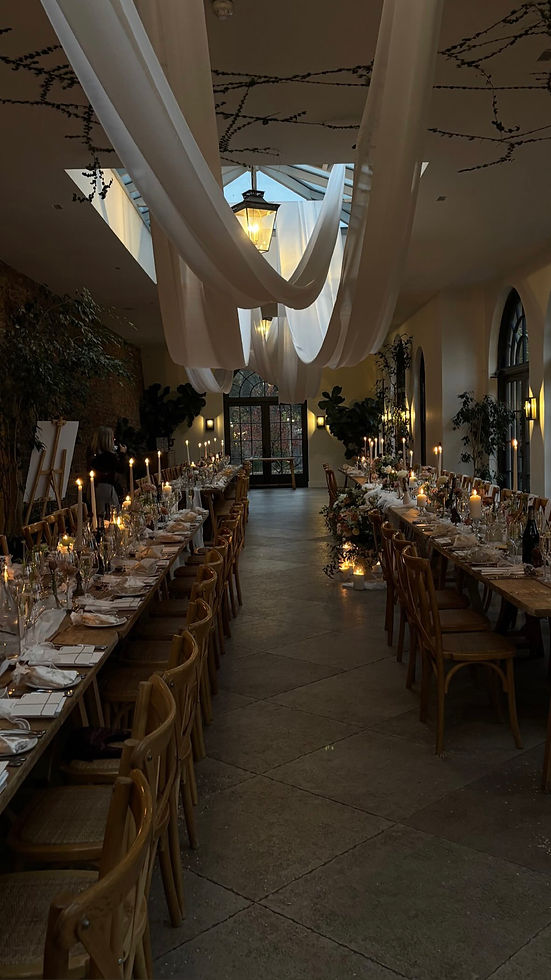 Middleton Lodge’s Fig House is the perfect canvas for this look. The way the drapes interact with the original brickwork and the lush, creeping vines makes the space feel like it has been curated by nature itself over decades, rather than just styled for a day.